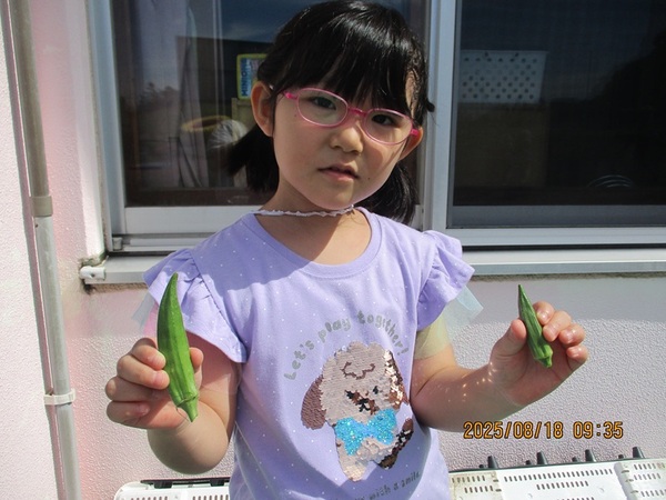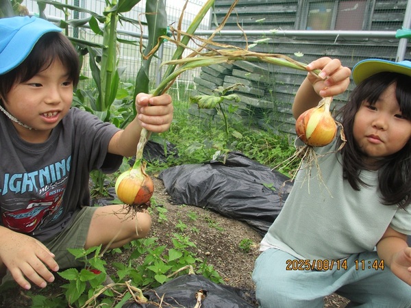 にんじん、じゃがいもはもちろん、たまねぎ、おくら、とうもろこし等、たくさんの野菜を畑で育てました。草むしりをしたり、水をあげたり、成長を楽しみにしていました。みんなの愛情が伝わり大豊作!!!おいしくおいしくいただきました。